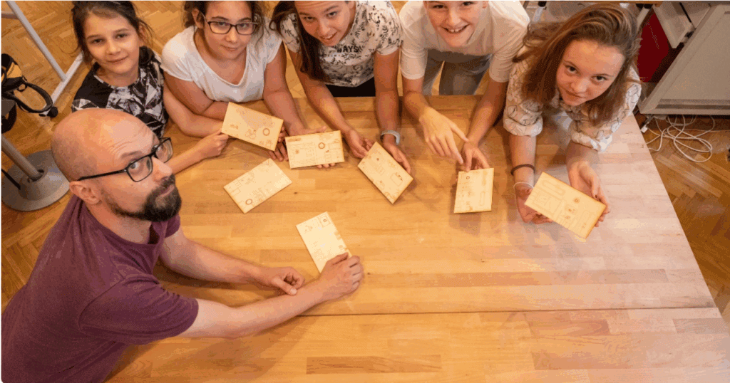 Egy közös ismerősünk kötött össze bennünket, majd Péter meghívott az akkoriban még Nagykovácsiban lévő műhelybe. Elsőre egyáltalán nem láttam, hol és hogyan tudok bekapcsolódni ebbe az egészbe – én gyerekekkel foglalkozom, nem lézervágással meg 3D nyomtatással. Aztán meggyőztek, hogy tartsak egy tábort. Nem baj, ha nem értek a 3D nyomtatóhoz, abban a műhelymester segít. Pedagógusként számítottak rám.