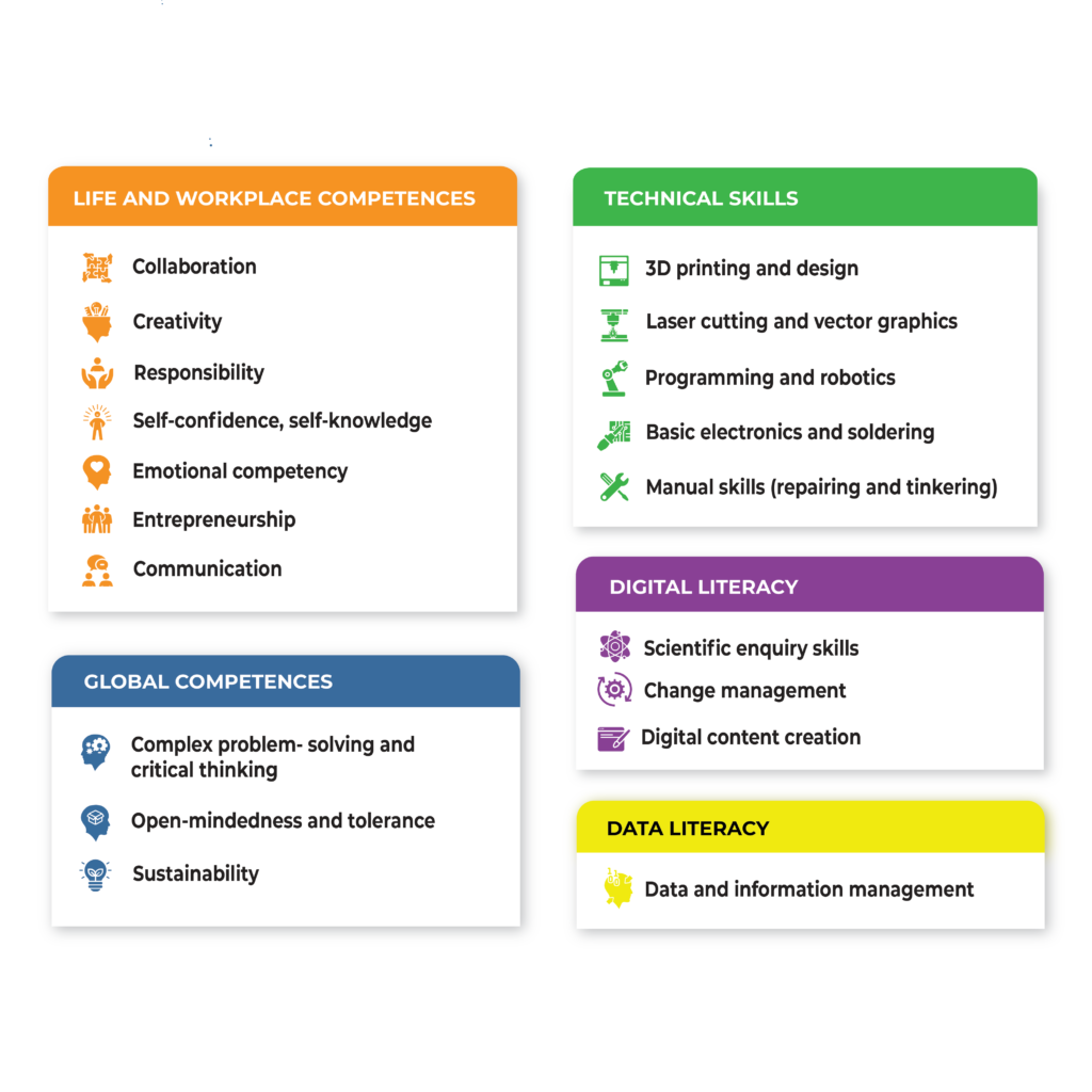 Mūsu produktu klāstā ir 15 STEAM mācību programmas, kas pārvērš mācīšanos un mācīšanu motivējošā un jēgpilnā pieredzē. Makerspaces ir droša vide, kurā visi bērni var atklāt savas stiprās puses un apgūt atbilstošas prasmes, sadarbojoties aizraujošos projektos un radot sarežģītus tehnoloģiskus objektus. Ir svarīgi rīkoties jau tagad, jo plaisa starp izglītību un darba tirgu palielinās, un tuvāko 25 gadu laikā aptuveni puse no mūsdienu zilajām un baltajām apkaklītēm strādājošajām profesijām tiks automatizētas.