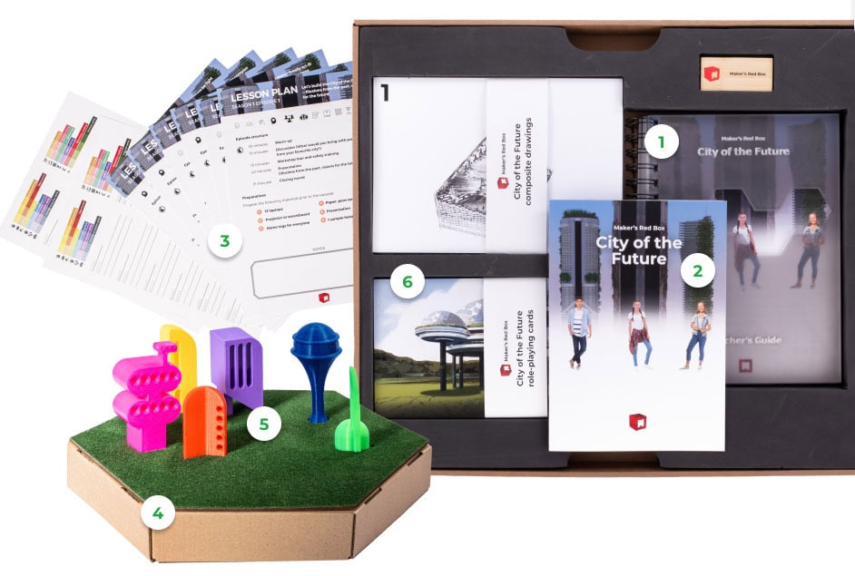 In this course, participants model the City of the Future based on their own ideas, desires, and visions. This requires collaboration – while each child represents a separate area of the city, the urban fabric can only come together through cooperation. Their chosen areas are displayed on individual hexagons, which collectively form the city model.